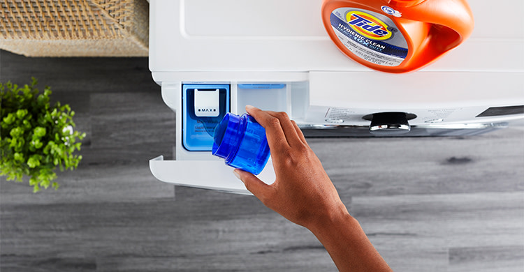 You can also use the cap to ensure you use the right amount of detergent. Just fill it with the correct dose of detergent, and pour it into the detergent dispenser if you have an HE machine, or directly into the drum before loading the clothes if you have a non-HE machine.